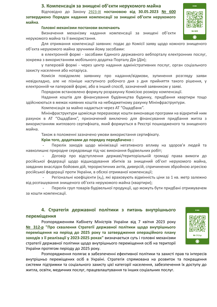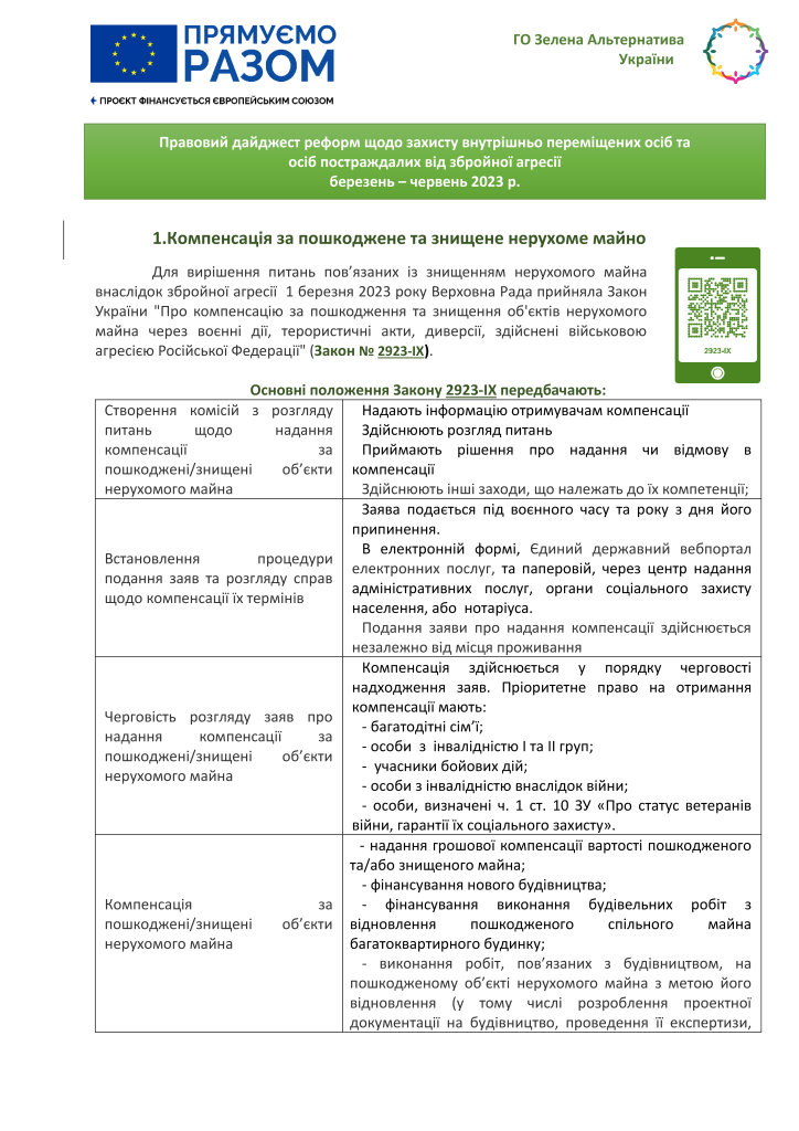 Правовий дайджест реформ щодо захисту внутрішньо переміщених осіб та осіб постраждалих від збройної агресії за період березень – червень 2023 р., розроблений ГО «Зелена альтернатива України».