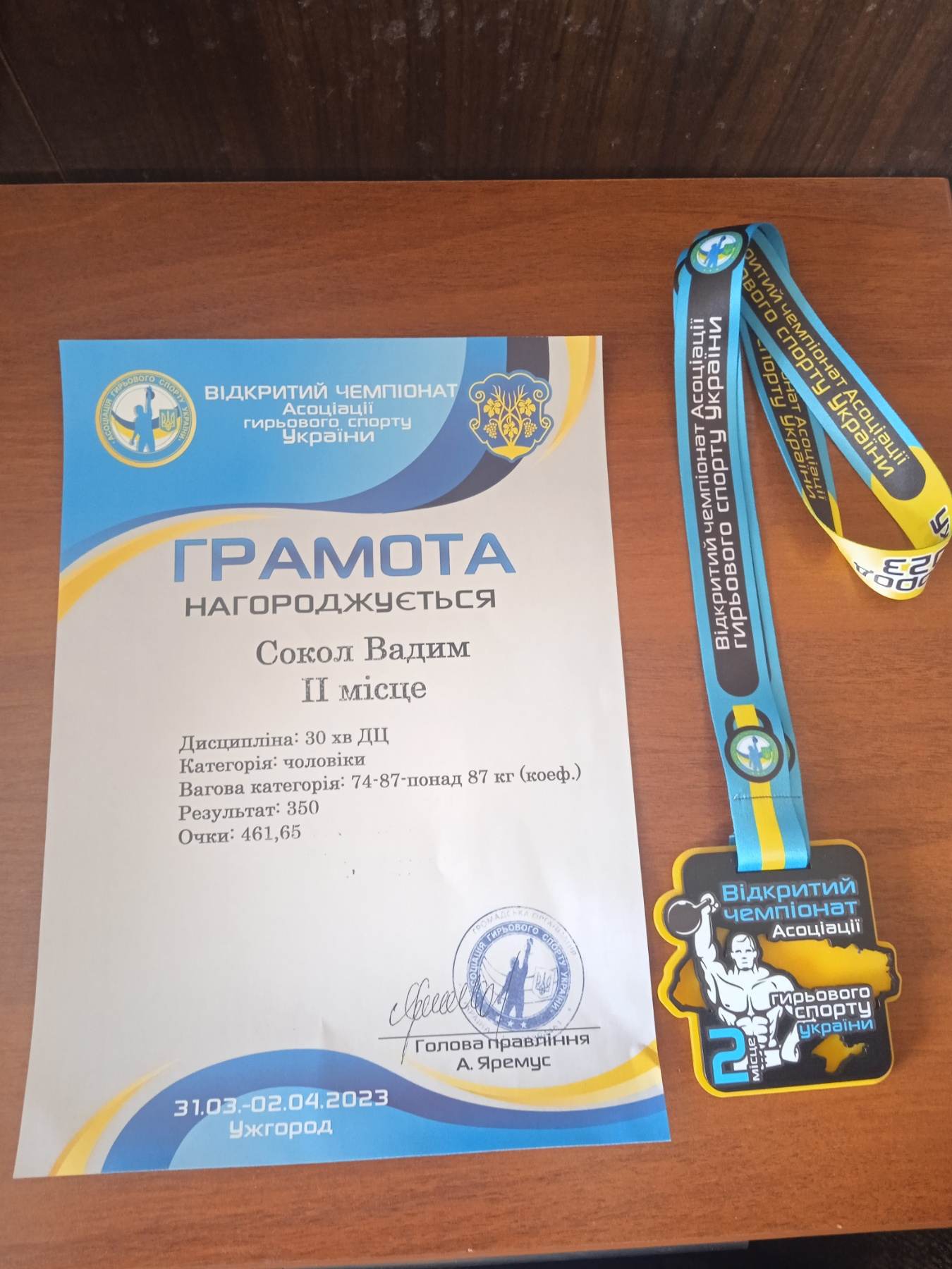 Вітаємо з зайнятим 2 місцем в ваговій категорії 74-87-понад 87 кг., дисципліна: 30хв ДЦ