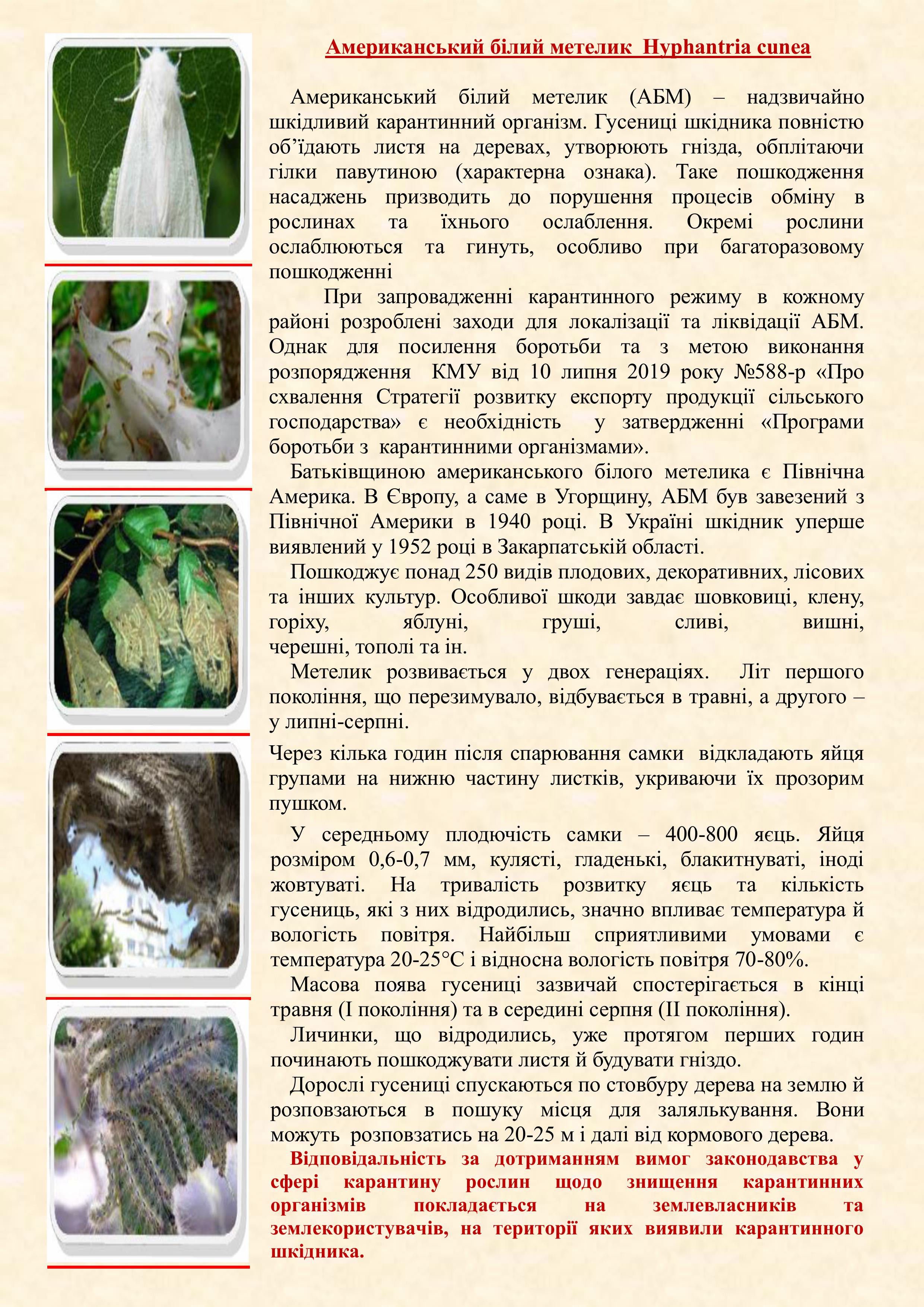Виявлення американського білого метелика. Запроваджено карантинний режим.