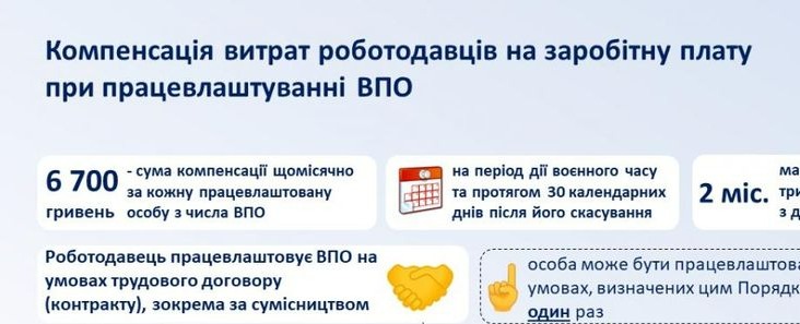 Компенсація витрат роботодавців на заробітну плату при працевлаштуванні ВПО