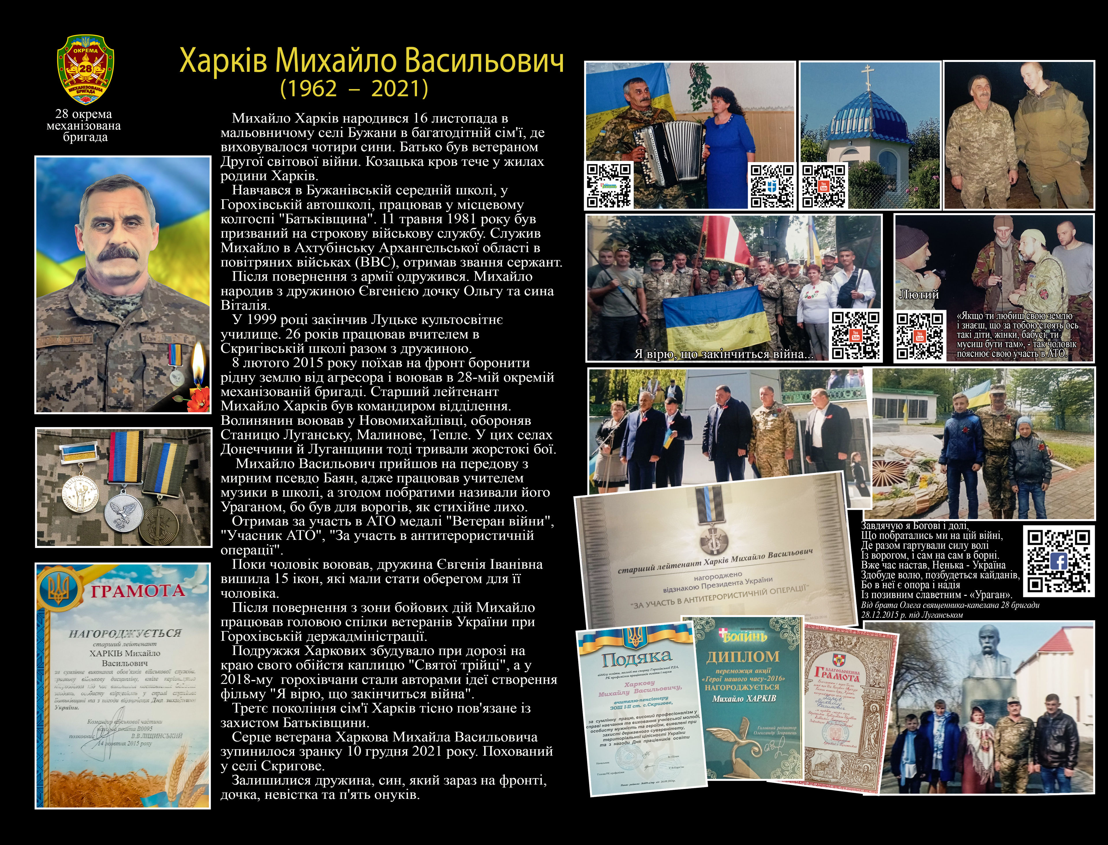 Серце ветерана Харкова Михайла Васильовича зупинилося зранку 10 грудня 2021 року.